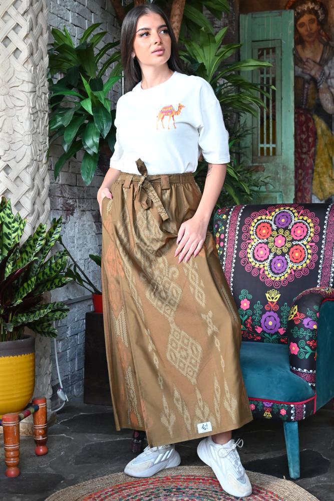 بنطلون إزرهـ واسع باللون بني بطبقة قماش أمامية