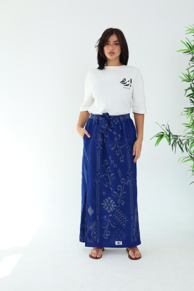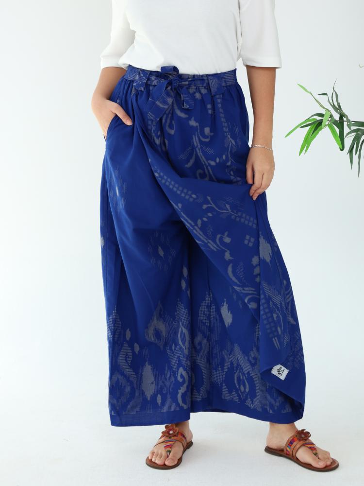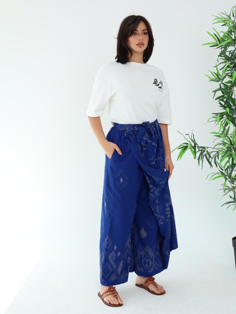 بنطلون إزرهـ واسع باللون الازرق بطبقة قماش أمامية